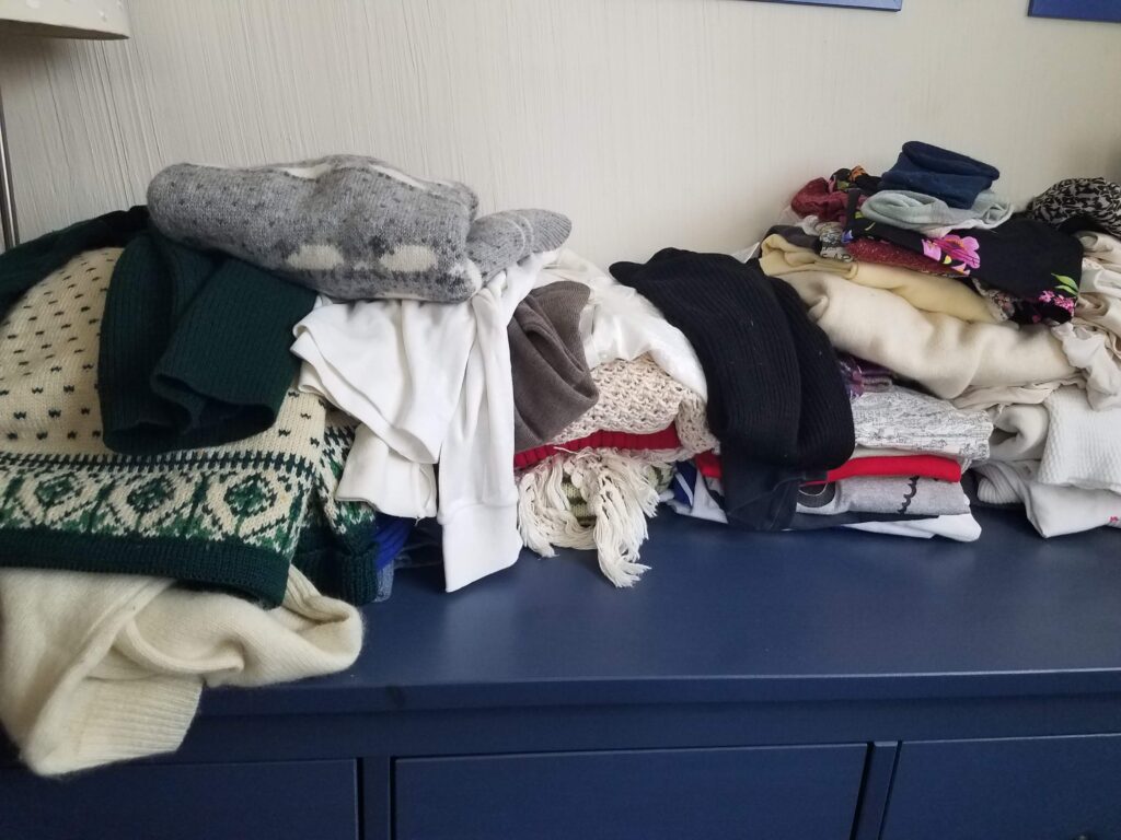 One of the big, daunting tasks I’ve been dealing with for over two years now is sorting through my mom’s things, many of which are stacked in boxes and reducing the functionality of at least three rooms in our house. It has been difficult enough to part with things of my own as I try to revive the Marie Kondo tidying process I started during the pandemic, [3] but parting with my mom’s things has been even harder, particularly if there’s a possibility they may just wind up in a landfill. My best friend came over and helped me sort through bags and bags of her clothes last year, [4] and there were many I wound up keeping because they needed mending – and would therefore not wind up on the rack at a thrift store.