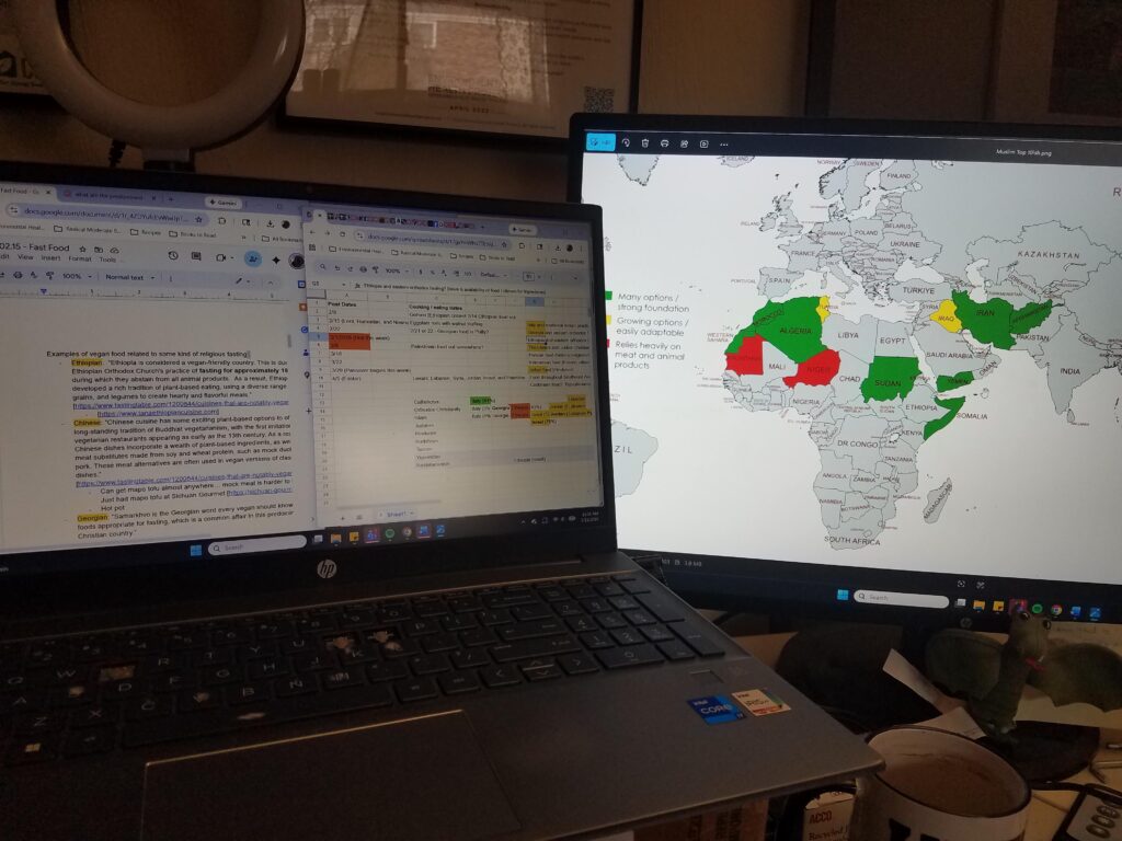 I am not going to do a deep dive into critiques of capitalism here (though I’m sure you will find it on this blog in the future); I will say, from my perspective, it is a system – one of many that can be abused by humans who want to accumulate power. Without saying whether capitalism is good or bad, I will say that it has played a role in the growing availability of vegan options in many of the cuisines I explored for this series. [9] No matter the reasons why customers are demanding more vegan food (e.g. animal welfare, carbon footprint, health benefits), restaurants and product manufacturers are taking advantage of that demand, which is expected to continue to grow in the coming years. [10]