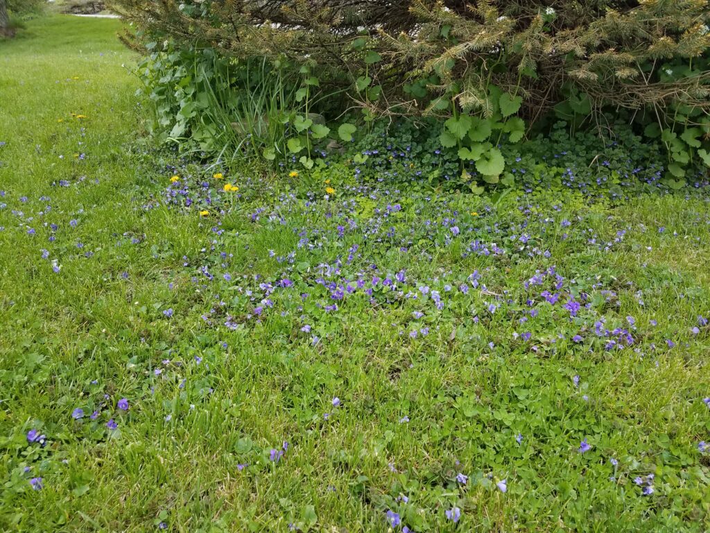 Every year I hope my newly germinated clover will simply crowd out the grass in my lawn, I can’t even keep grass out of my garden beds, where I actively remove it, so I’m not exactly holding my breath there. While the grass doesn’t seem to be going away any time soon, I’ve at least got a good mix going between multiple types of clover, creeping charlie, violets, wild strawberries, and some other random plants I don’t know. The most beautiful time to see them all come up is in the spring, before Christian mows the lawn for the first time. On more than one occasion I’ve asked him to wait until I can run outside and get some pictures.