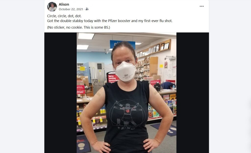 Pics or it didn’t happen. In the span of about six months, I went from cautious about getting my first SARS-CoV-2 vaccine to proud about getting my first flu shot. Though there is an unmistakable whiff of virtue signaling in my posts, I do hope that talking about it has helped to normalize vaccinations for people who have questions.