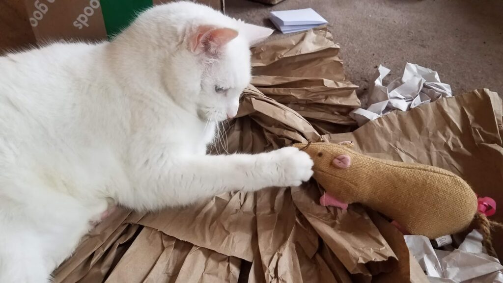 Even into adulthood, Spuddy was playful like a kitten. He was surprisingly gentle when playing with people, but particularly vicious with catnip rats.