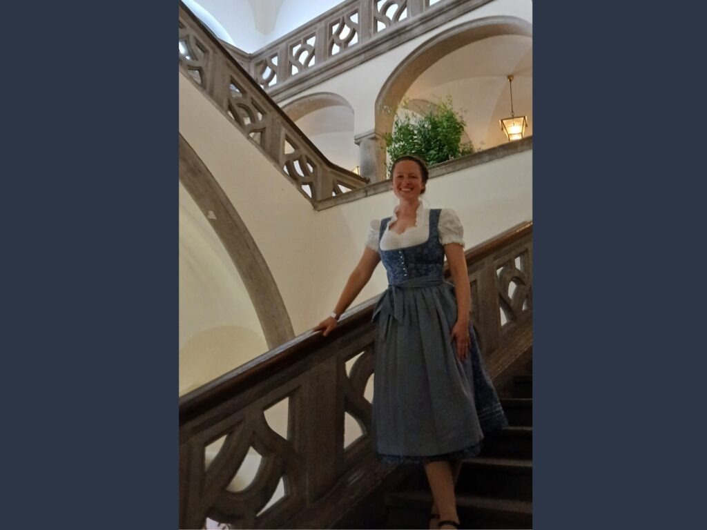Until that point, it had not occurred to me that wearing this traditional German dress in Germany might be controversial. Certainly, when touring a foreign country, one should show respect for one’s hosts. For instance, if you’re going to dress up, that means wearing traditional clothing as a way to participate in their culture, not using it as a costume. (Having lived in Japan and worn traditional clothing there, I already understood that much about the difference between cultural appreciation and cultural appropriation.) When it comes to Bavaria and the surrounding region, the dirndl was originally a practical garment dating back to the 18th century and worn by maids in rural areas. Its original form is a far cry from some of the bright-colored, short-hemmed, cheap quality dresses worn by many tourists in modern times at beer festivals in Germany and in the United States.